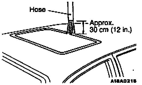 3. Pour water over the roof from about 30 cm (12 in.) above roof for more than 5 minutes.