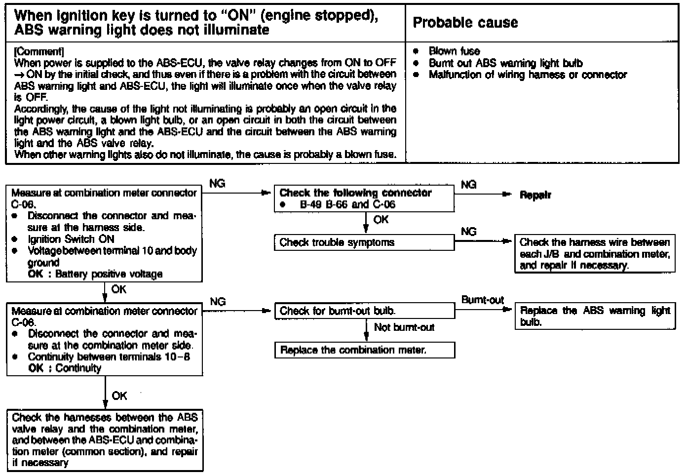 Fig 40 Test 3: When Ignition Key Is Turned On ABS Warning Lamp Does Not Illuminate: