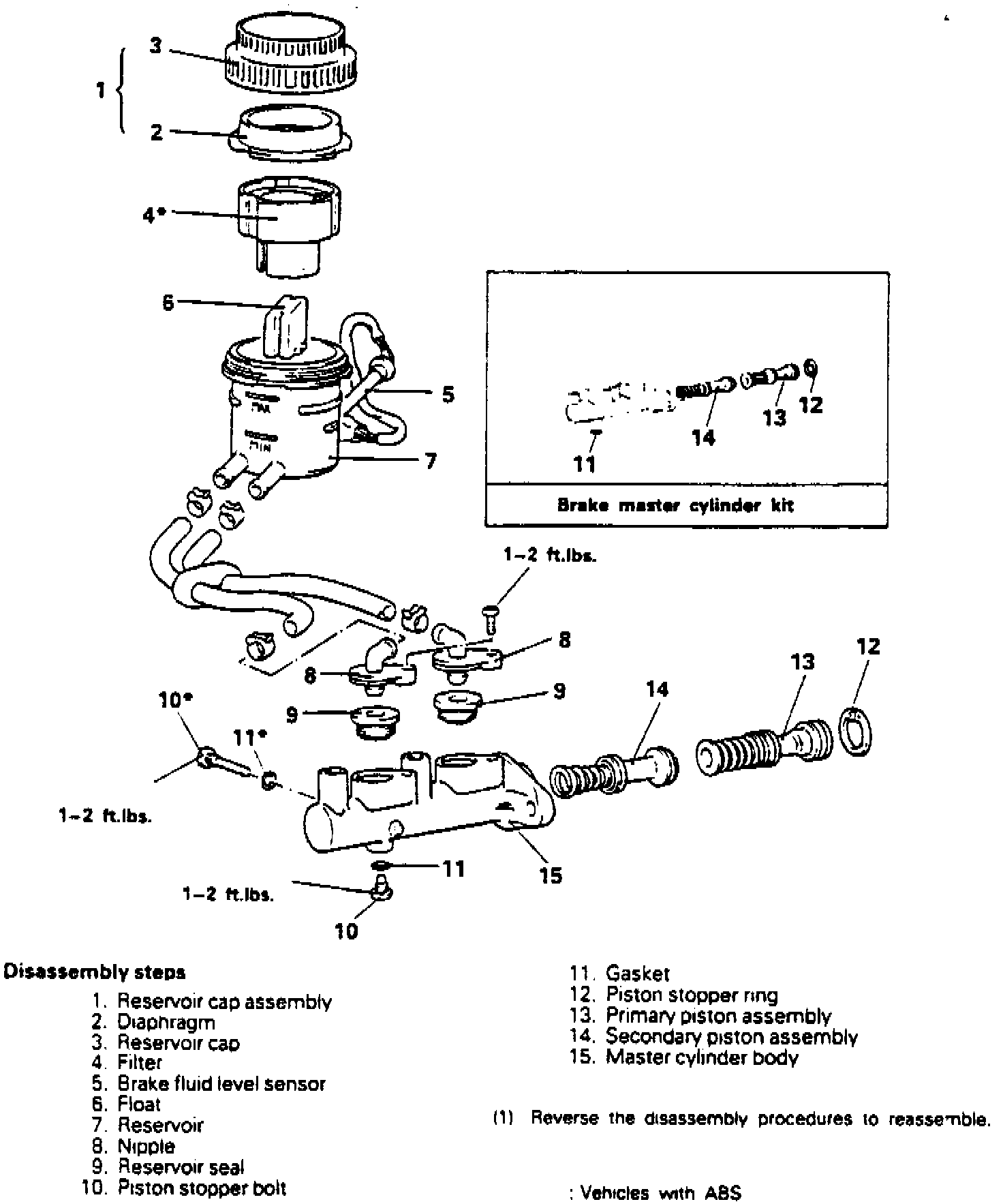 When disassembling the master cylinder, note the position of all parts as they are removed for proper installation.