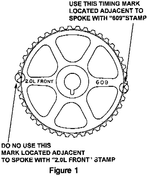 The camshaft sprockets on the 2.0L DOHC engines built Aug. 1, 1994 through Oct. 31, 1994 may have two timing marks on the 2.0L side of each sprocket.