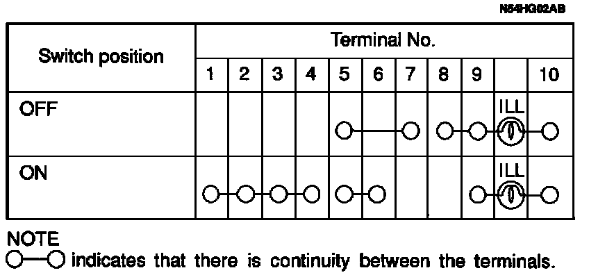 Hazard Warning Light Warning Continuity Check Table: