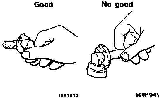 CAUTION: Do not touch the surface of the bulb with hands or dirty gloves. If the surface does become dirty, clean it with alcohol or thinner, and let it dry thoroughly before installing.