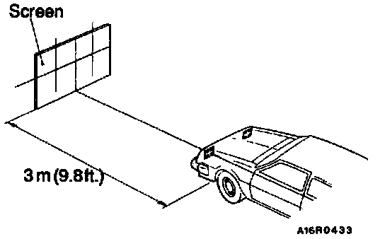 1. Set the distance between the screen and the bulb center marks (Box marks) of the headlight as shown in the illustration.