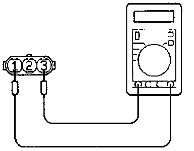 2. Measure the resistance between the throttle position sensor side connector terminal 1 and terminal 3.
