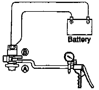 3. Connect a hand vacuum pump to nipple (A) of the solenoid valve (refer to the illustration).