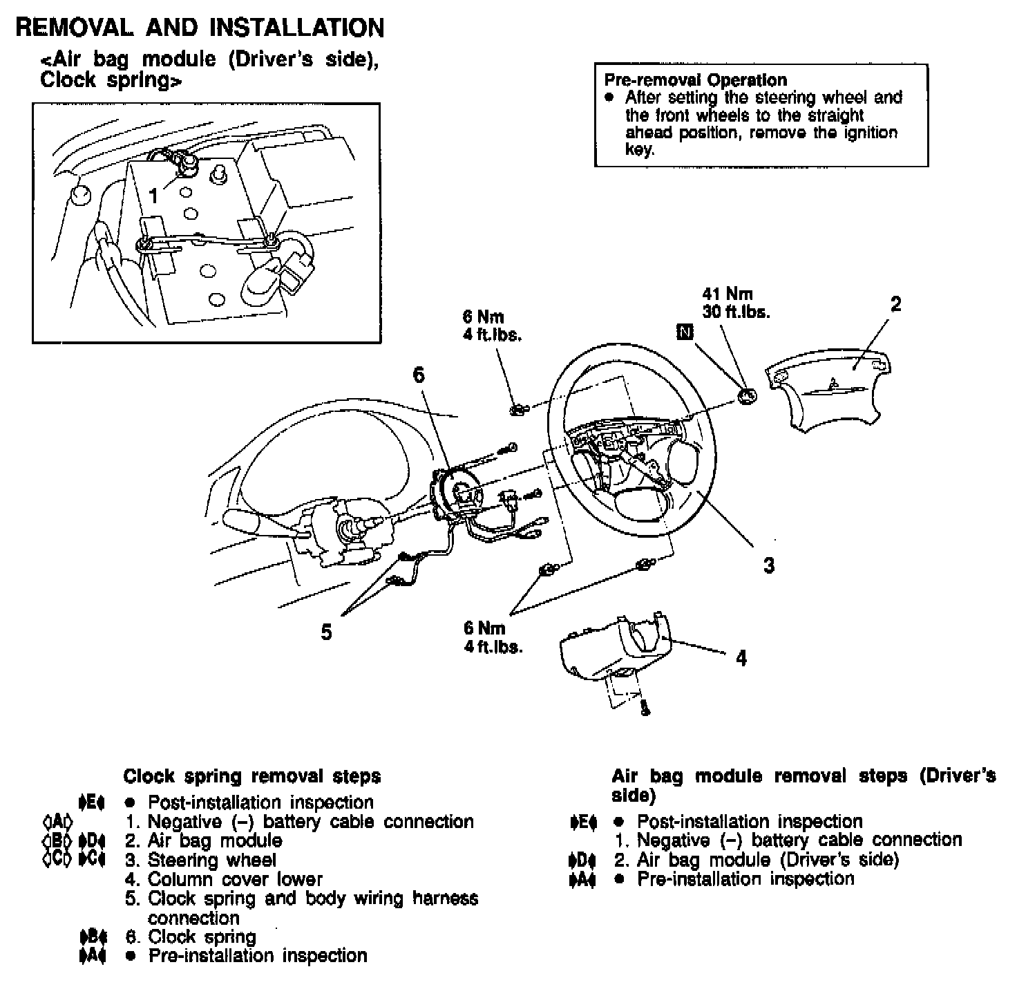 1. After installing the clock spring, the steering wheel, the column covers and the air bag module, check steering wheel for noise, binds or difficult operation.