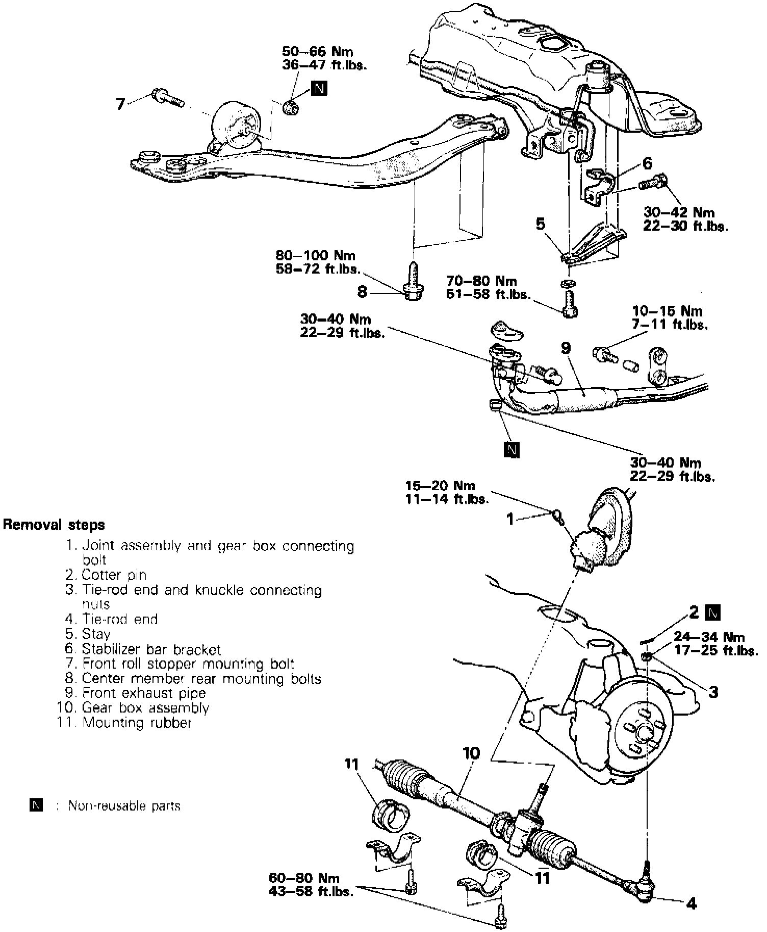 1. Turn rack completely to right, the disconnect gearbox from crossmember.