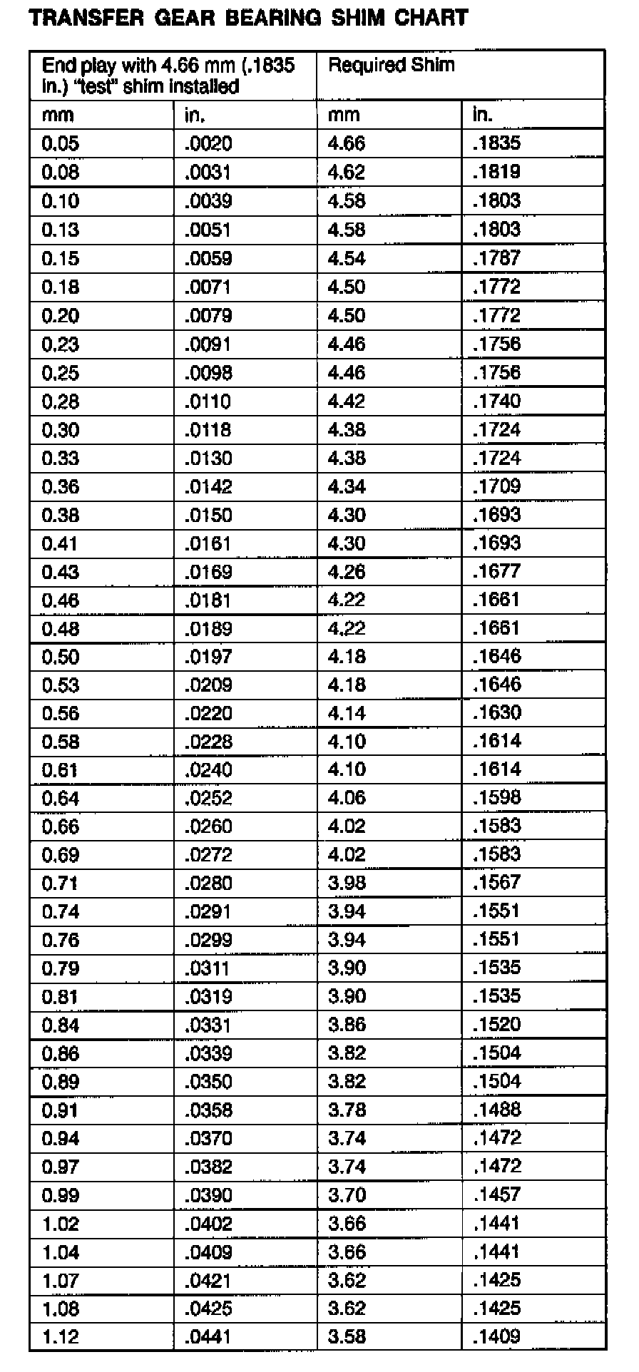 46. Once bearing end play has been determined, refer to the Transfer Bearing Shim Chart for the required shim.