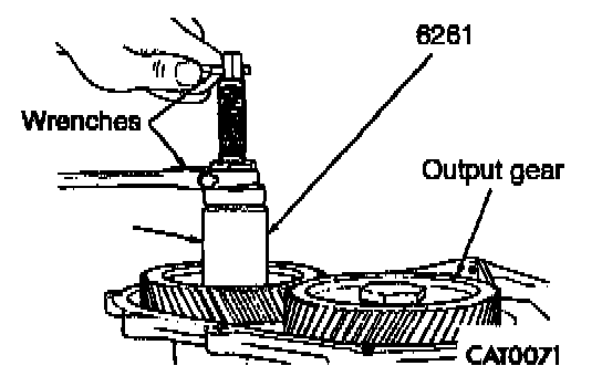 49. Install transfer shaft gear, using Gear Installer 6261 and two wrenches as shown.