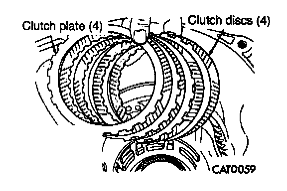 66. The 2/4 clutch pack clearance is 0.76 to 2.64 mm (0.0299 to 0.1039 inch). If not within specifications, the clutch is not assembled properly. There is no adjustment for the 2/4 clutch clearance.
