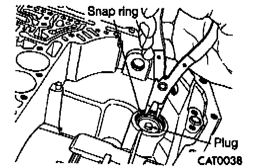 81. Install the snap ring holding the low/reverse accumulator plug (cover) in place.
