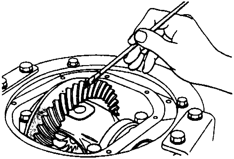 b. Measure backlash at four points or more on the circumference of the drive gear. Backlash should be within 0.004-0.006 inch.