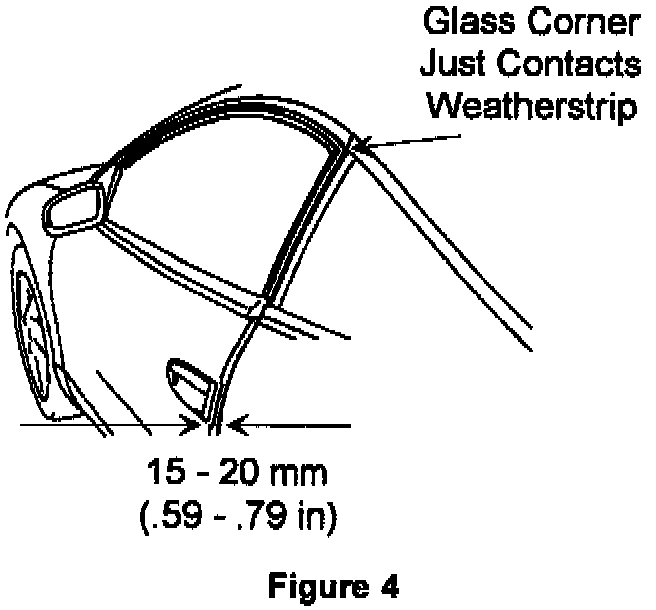 1. Wet the inner corner of the glass. Close the door just until the glass contacts the weather strip. Measure the gap between the body and the door, just below the door handle (Figure 4).