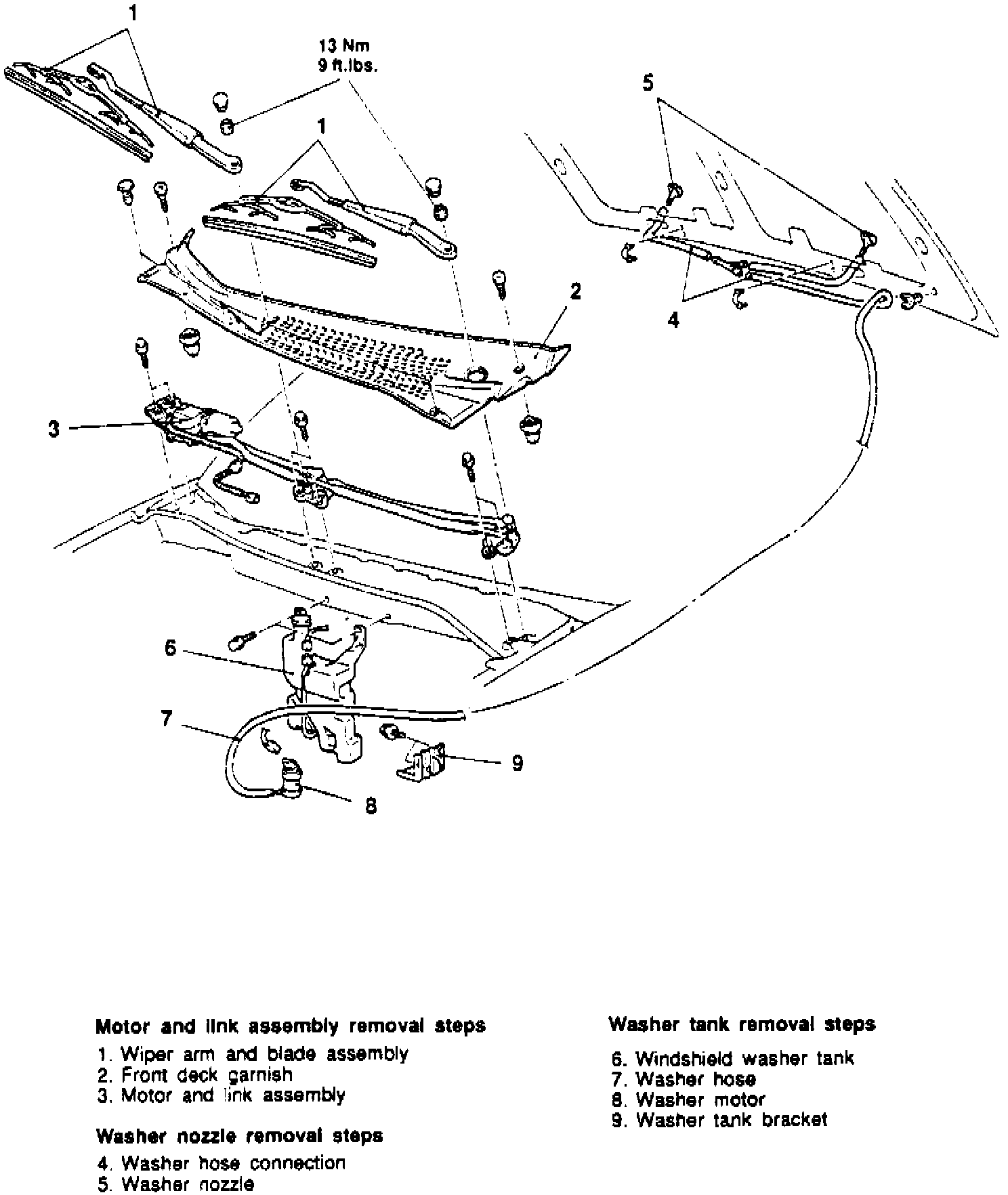 Fig. 13 Front Wiper Motor & Transmission Replacement: