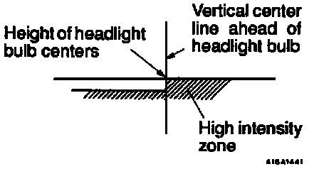 1. A properly aimed lower beam will appear on the aiming screen 3 m (9.8 Feet) in front of the vehicle. The shaded area as shown in the illustration indicates high intensity zone.