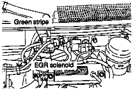 1. Disconnect the vacuum hose (green stripe) from the EGR solenoid, and then connect a hand vacuum pump via the three-way terminal.