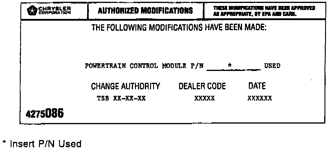 9. Type the necessary information on the "Authorized Software Update" label, P/N 4669020. Attach the label to the PCM and cover the label with the clear plastic overlay.