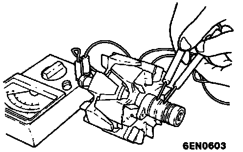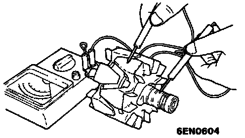 2. Check rotor coil for grounding. Check to ensure that there is no continuity between slip ring and core If there is continuity, replace rotor assembly.
