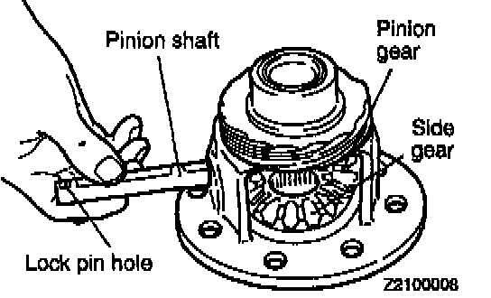 Align the lock pin hole in pinion shaft with that in the case and install the lock pin.