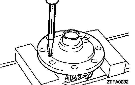 1. Fit the spacer to the back face of the side gear, then install the gear into the differential case.