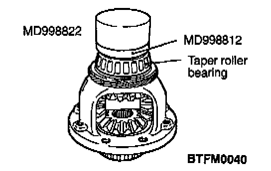 Use the special tool to press-fit the bearings into both sides of the differential case.