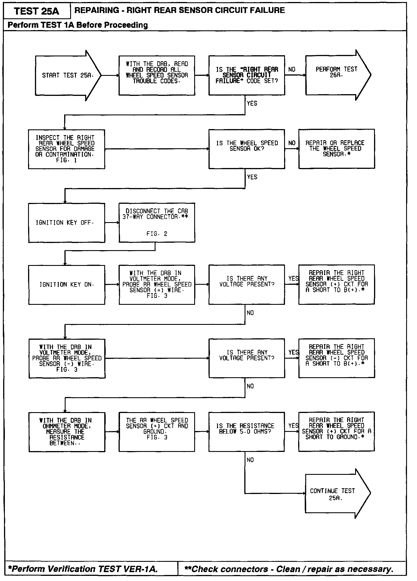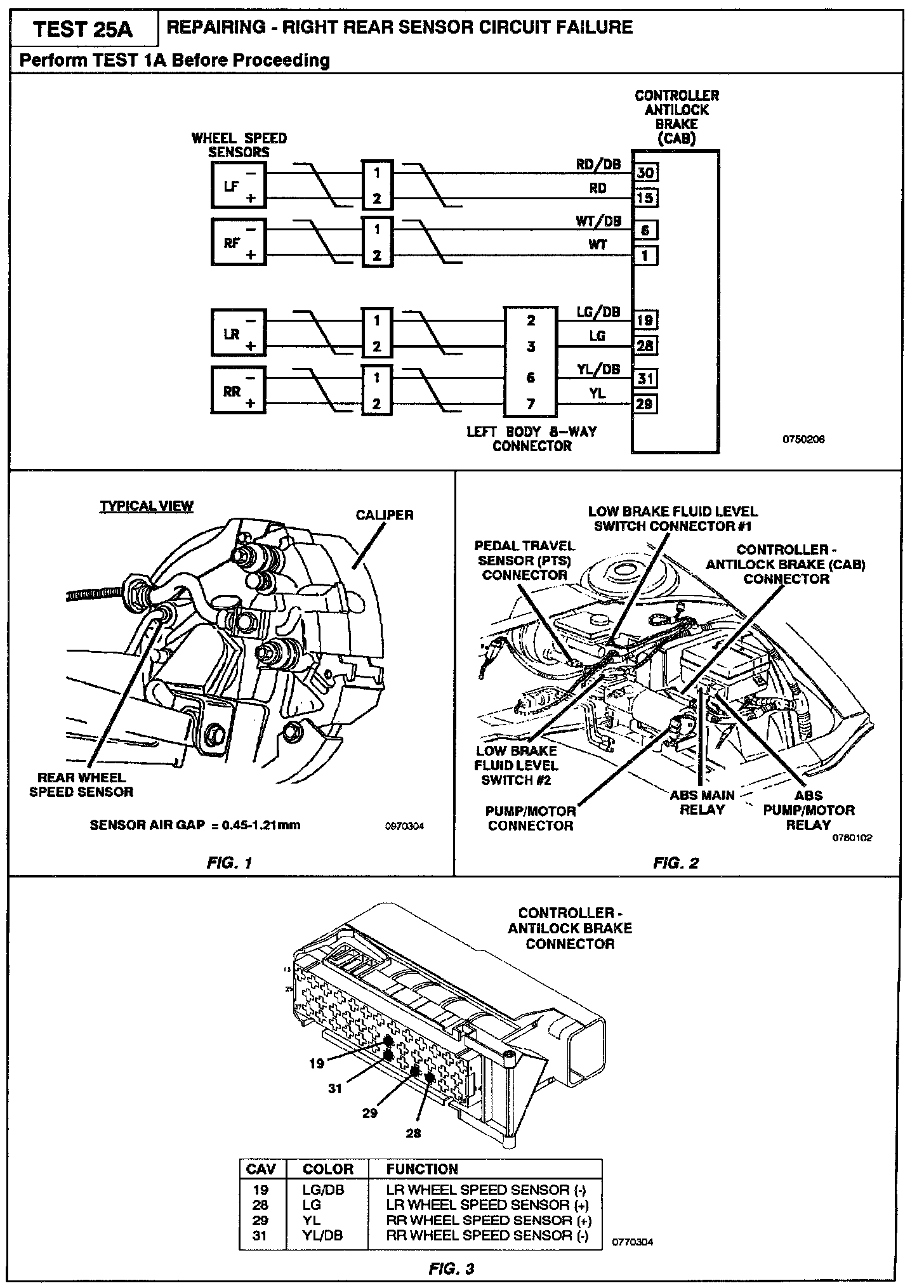 Test 25A - Right Rear Sensor Circuit Failure