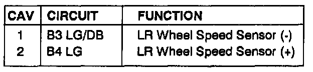 LR WHEEL SPEED SENSOR CONNECTOR Pin Out: