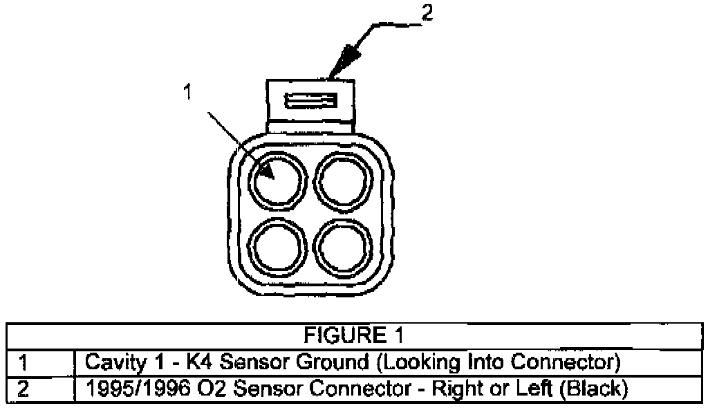 8. Repeat steps 4 through 7 for the left oxygen sensor K4 circuit, (Figure 1) using the other lead from the Y spliced repair jumper, route the lead from the jumper harness by following the same path as the engine harness.