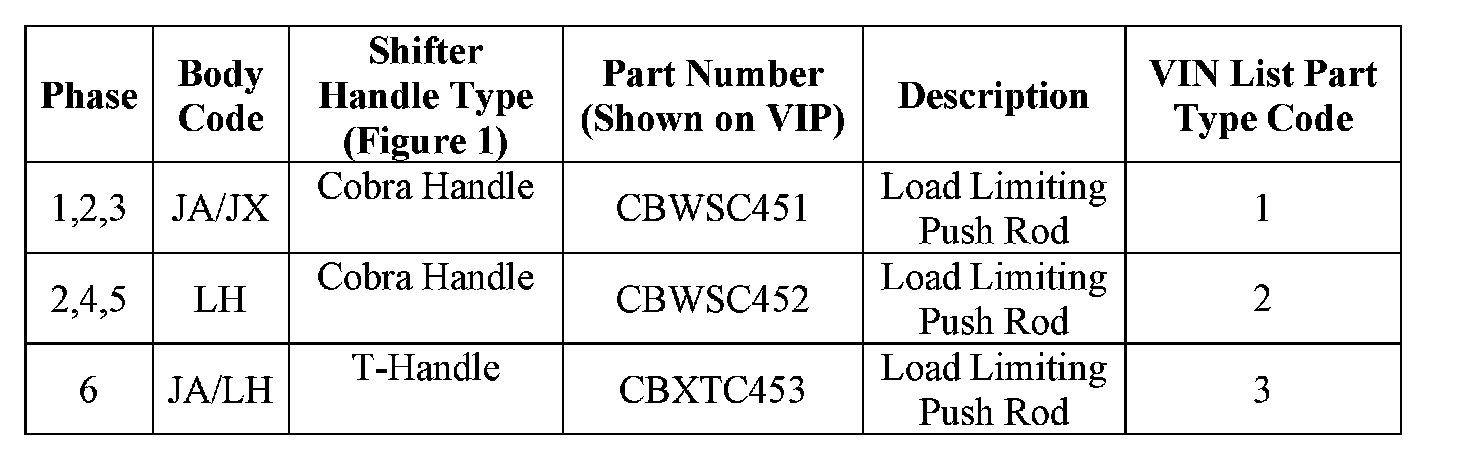 The shift interlock system must be inspected for proper operation. Vehicles with a functional interlock system will have a load limiting shift lever push rod installed into the original shifter assembly. Vehicles with an inoperative interlock system must have the floor shifter assembly replaced.