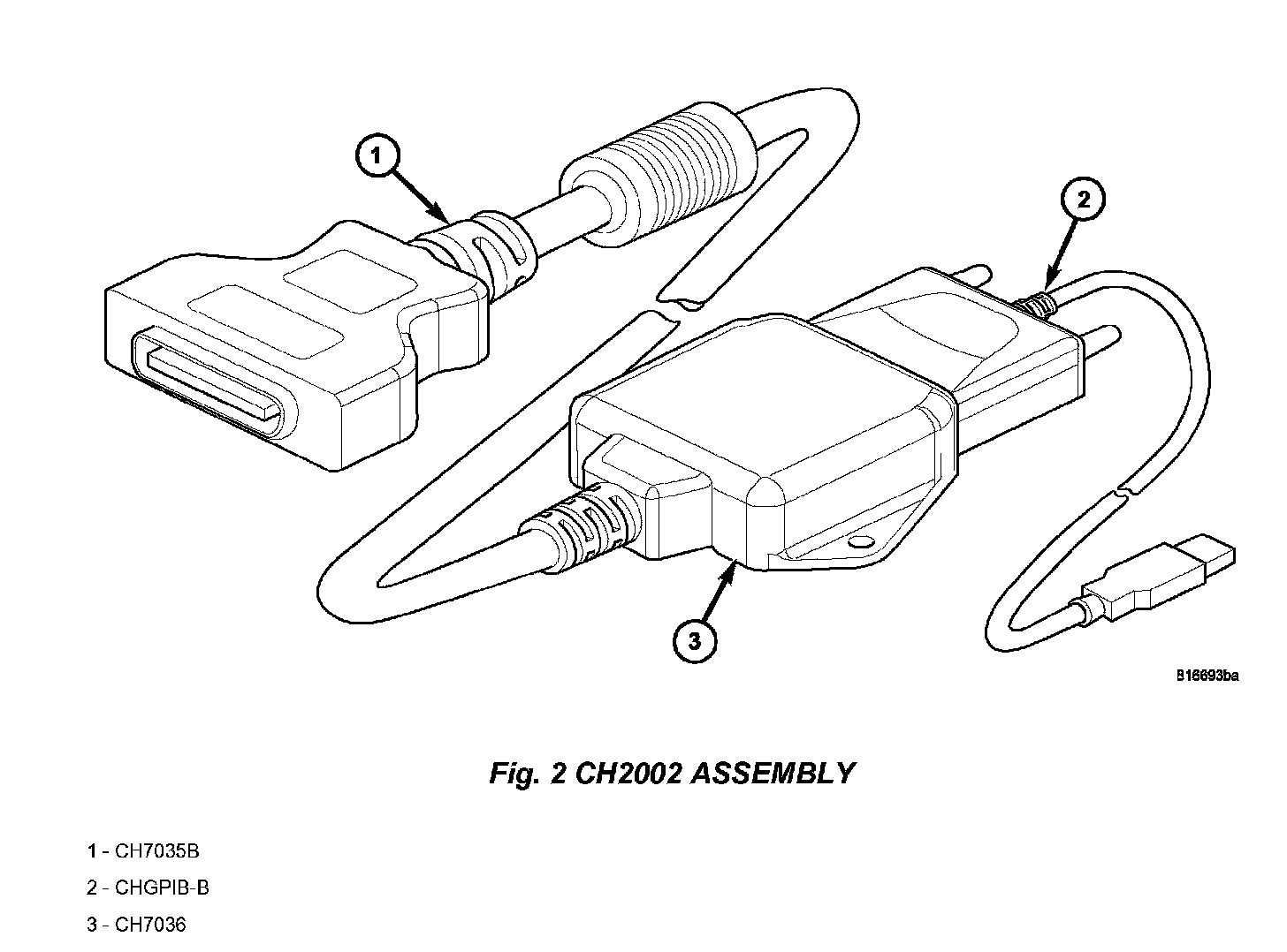 4. Insure that the larger female D-shell amphenol GPIB connector of the new DRBIII(R) cable is properly attached to the male D-shell amphenol GPIB connector on the GPIB-USB-B protocol converter, (part number CHGPIB-B).