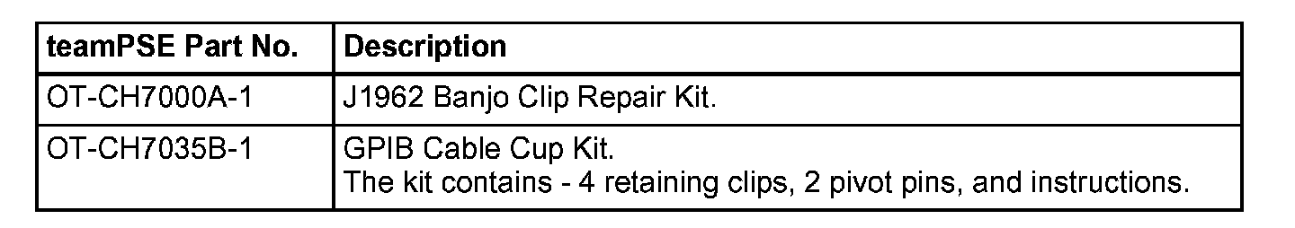 There are now clip repair kits available through teamPSE to replace the retaining clips for two of these cables. To protect the DRBIII(R) from internal damage, the clips are designed to fail at above 25 lbs. of axial force. Kits are described in the table.