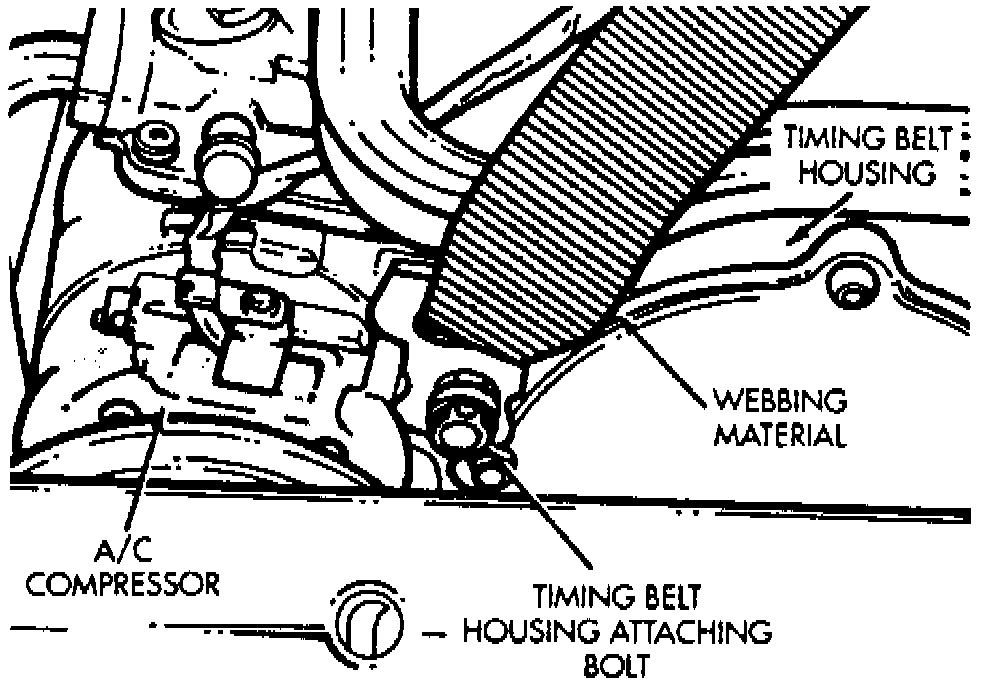 a. Remove bolt attaching A/C compressor bracket to front of engine. Install webbing material hook on A/C compressor bolt then install bolt and tighten.