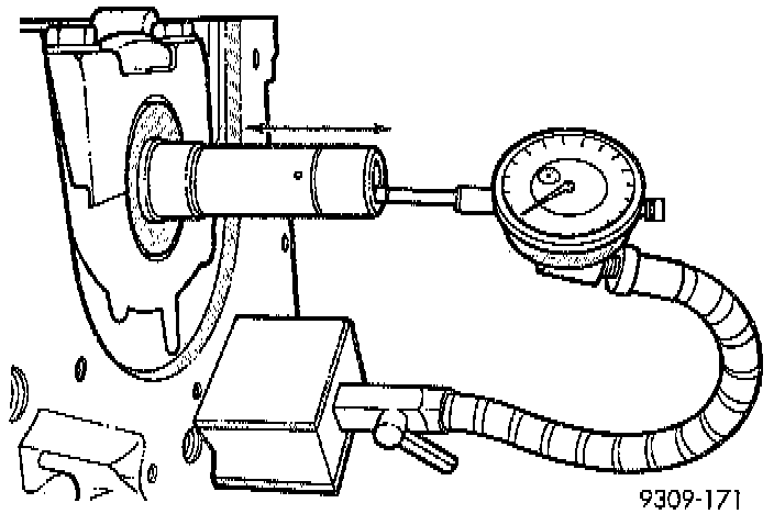 4. Move crankshaft all the way to the front and read the dial indicator. Refer to Crankshaft specifications.