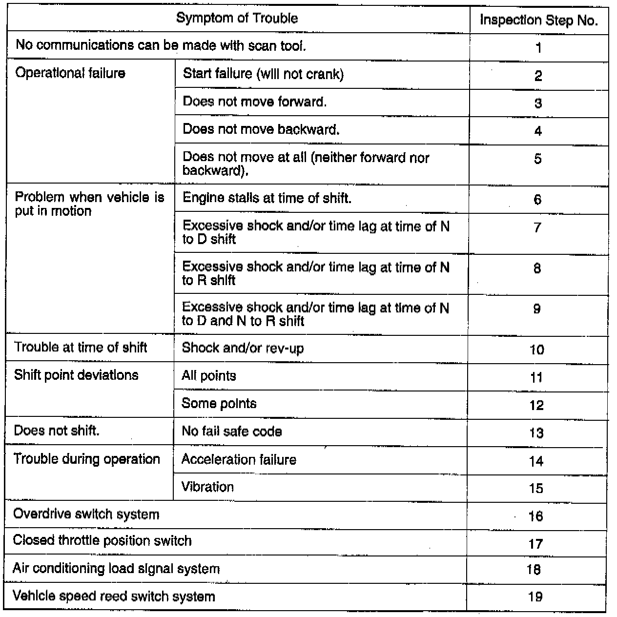 Symptom Cross Reference Chart