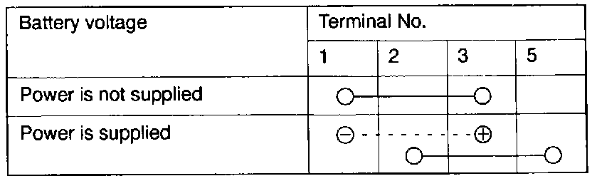 Theft Alarm Starter Relay Check Table: