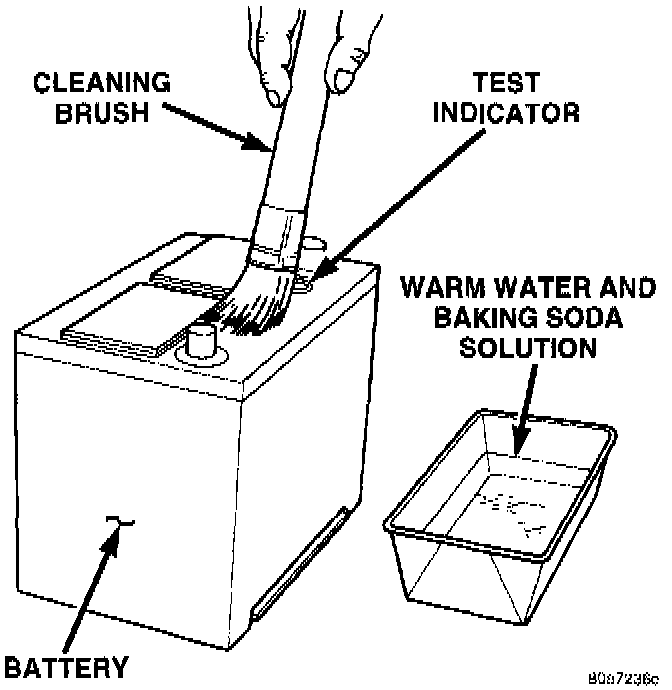 CAUTION: Do not allow baking soda solution to enter vent holes, as damage to battery can result.