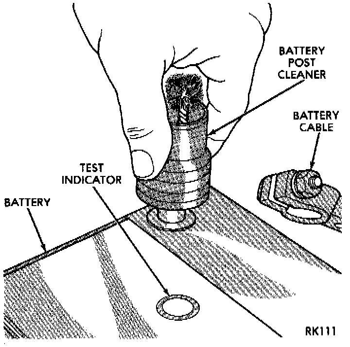 7. Clean battery cable clamps with a battery terminal cleaning tool. Replace cables that are frayed or have broken clamps.