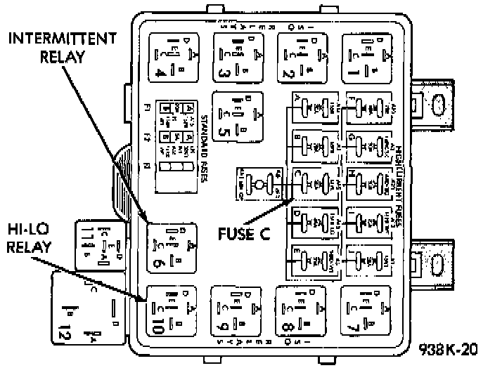 3. Check circuit from intermittent relay terminal C to Hi/Low relay terminal B for short to battery or ignition.