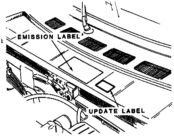 4. Affix the vehicle emission control information update label (print No. 3060) next to the emission control label in the engine compartment.