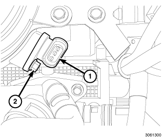 4. Connect and lock the Camshaft Position (CMP) sensor wire harness connector (1).