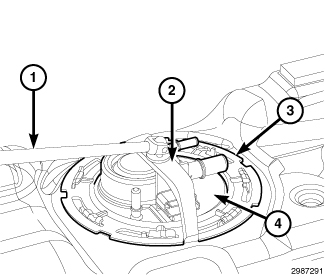 2. Using a new seal (gasket), install the fuel pump module (4) into the fuel tank opening.