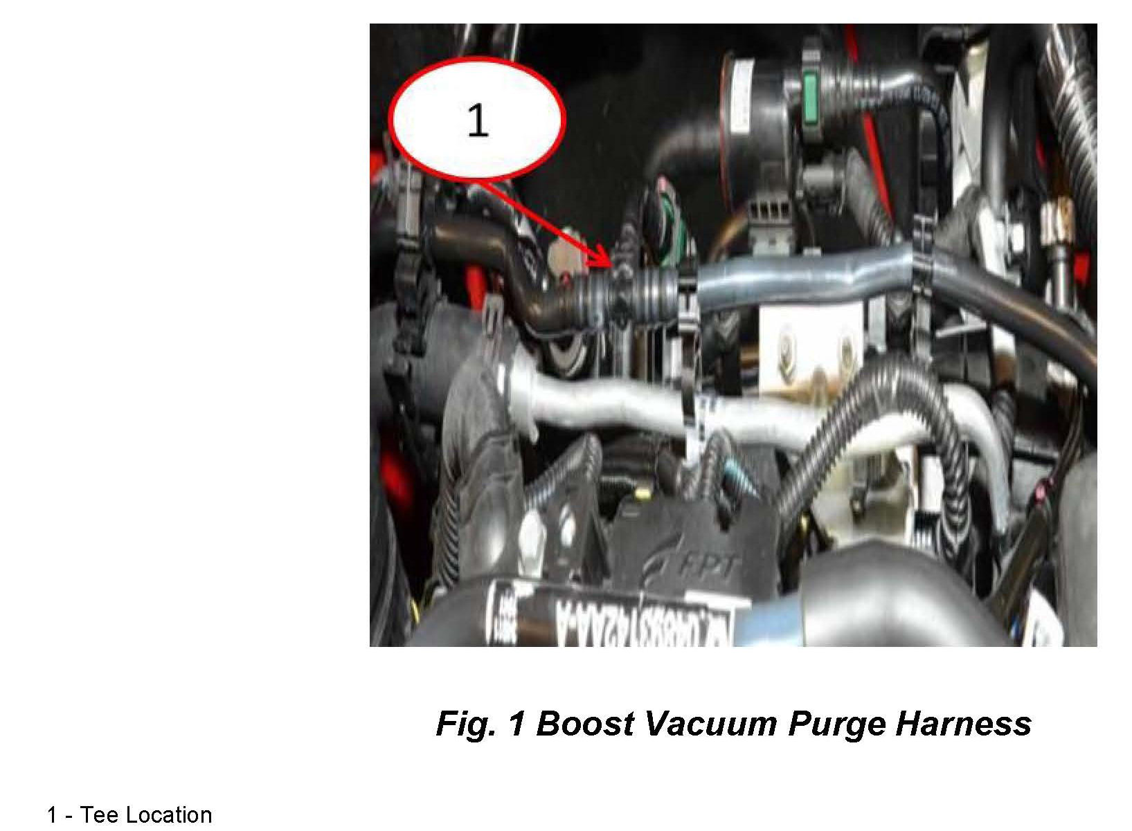 3. Shine a light on the boost vacuum purge harness tee (Fig. 1).
