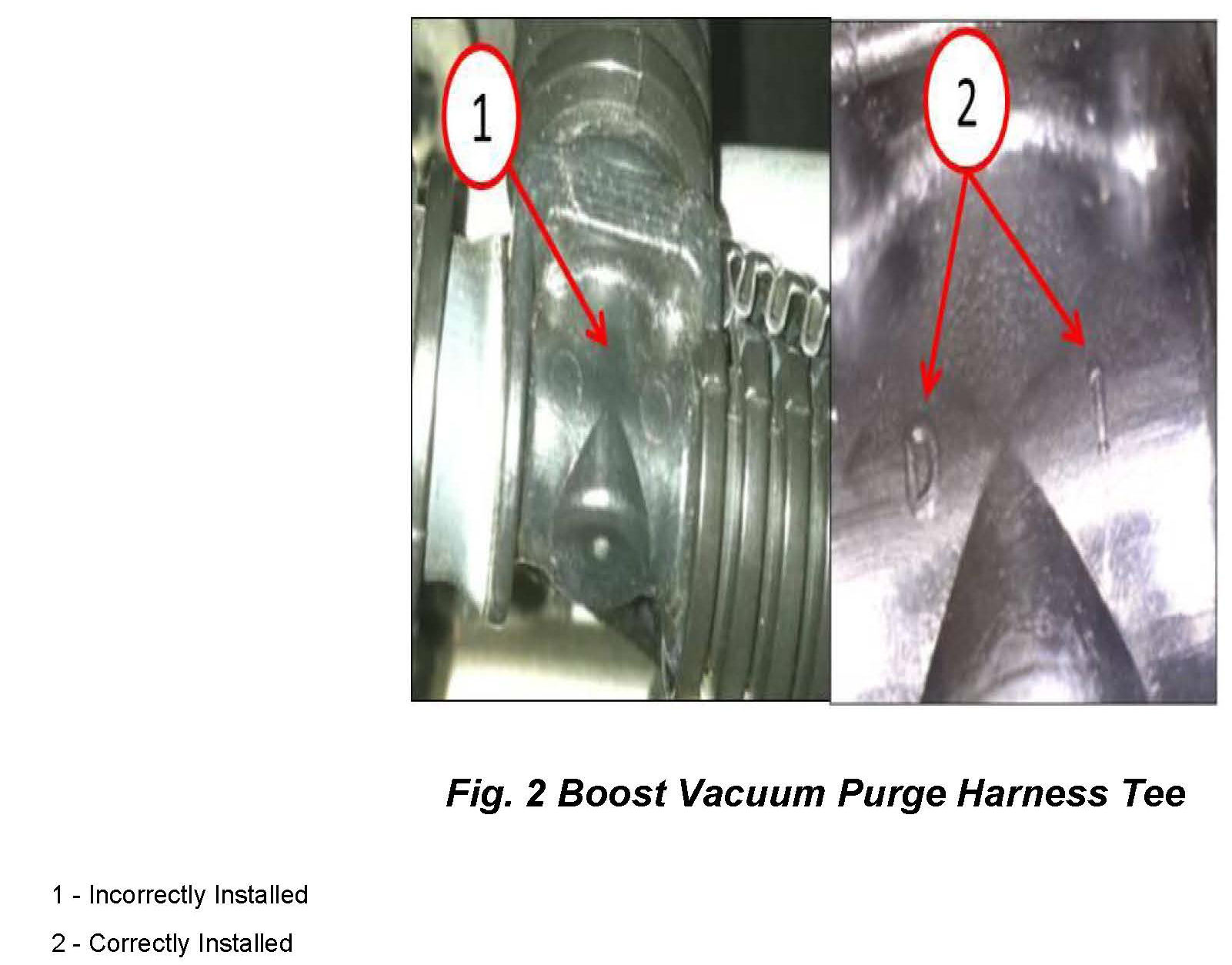 4. Inspect the tee in boost vacuum purge harness (Fig. 2).