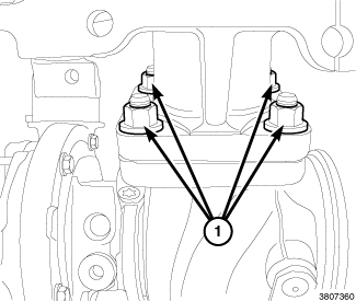 Install the nine exhaust manifold washers and new nuts (1).