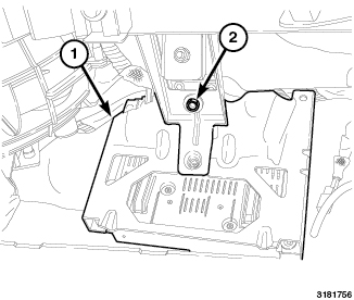 5. Align the CTM (1) bracket with the instrument panel bracket and install the retainer (2).
