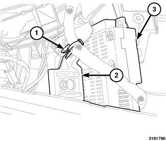 1. Disconnect the harness clip (1) from the CTM bracket (2) and remove the CTM (3).