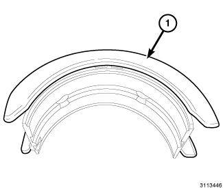 5. Inspect the crankshaft thrust washers (1) for scoring, scratches, wear or bluing.