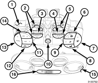 - a push button for manually turning the A/C system on and off (14). The control contains an indicator lamp that illuminates when the A/C system is in operation.