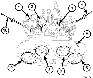 - a rotary mode control (6). The mode control is attached to the mode door cable (10) by a shaft and lever. A micro switch is also used to request A/C compressor operation when set in both Defrost and Mix (Foot/Defrost) modes.