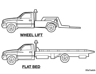 CAUTION: Many vehicles are equipped with air dams, spoilers, and/or ground effect panels. To avoid component damage, a wheel lift towing vehicle or a flat bed hauling vehicle is recommended.